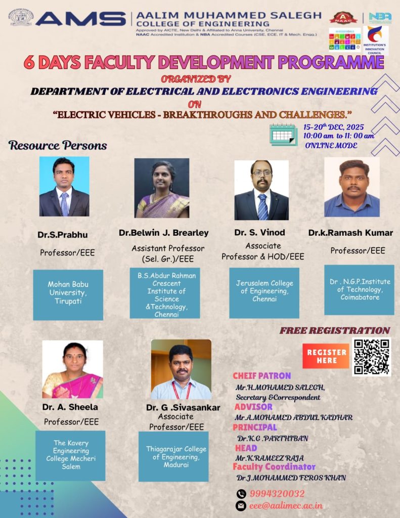 To ensure that the students are moulded into competent electrical engineers and worthy citizens of the country. This department plays a vital role in training students of other branches of engineering too. Besides regular classes and lab sessions, the department conducts seminars on emerging technologies regularly thereby ensuring that the students are “Industry Ready”.