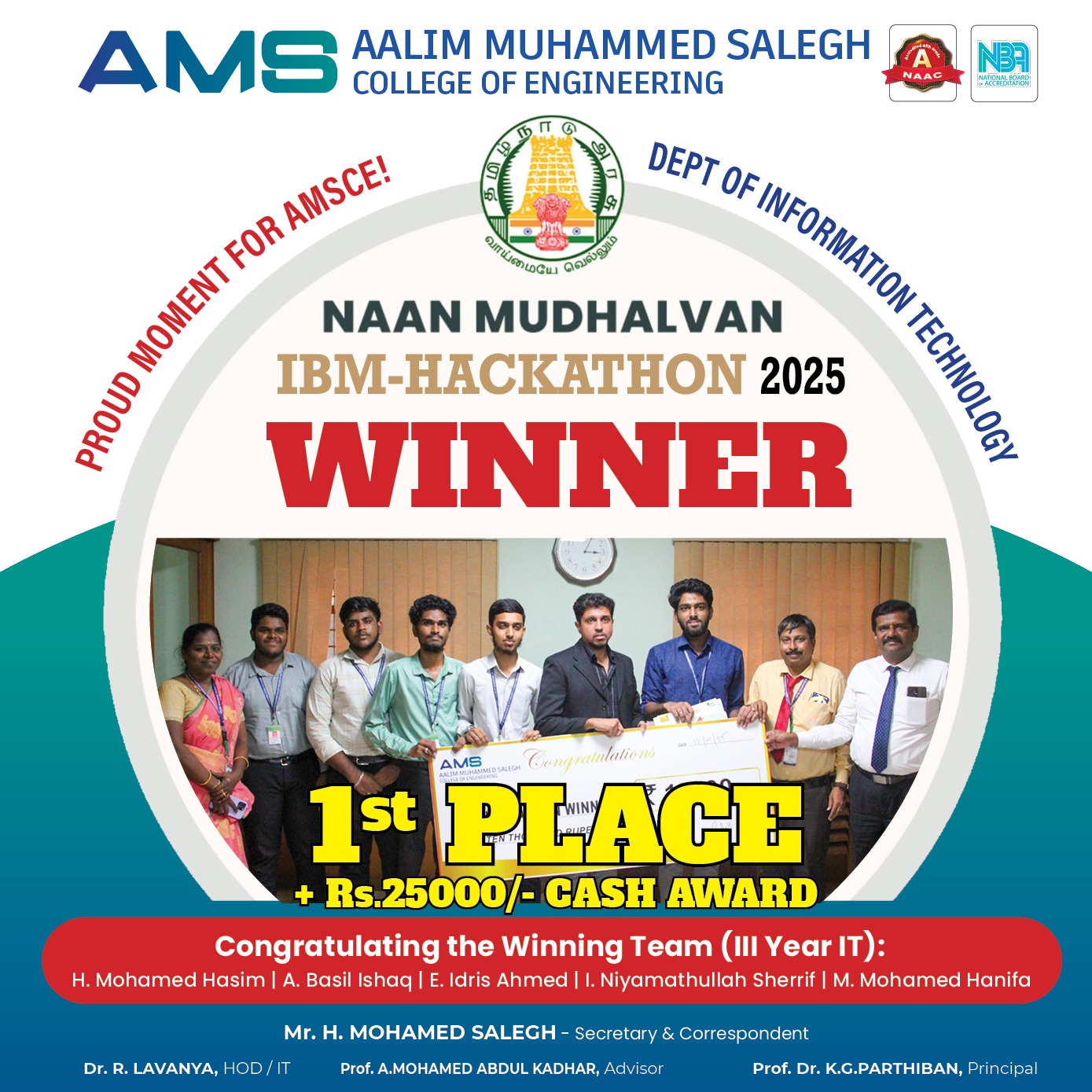 October 14 @ 9:00 am Among 5000+ students participated Hackathon Winners Aalim Muhammed Salegh College of Engineering, Avadi-IAF, Chennai, Tamil Nadu 600055 India + Google Map