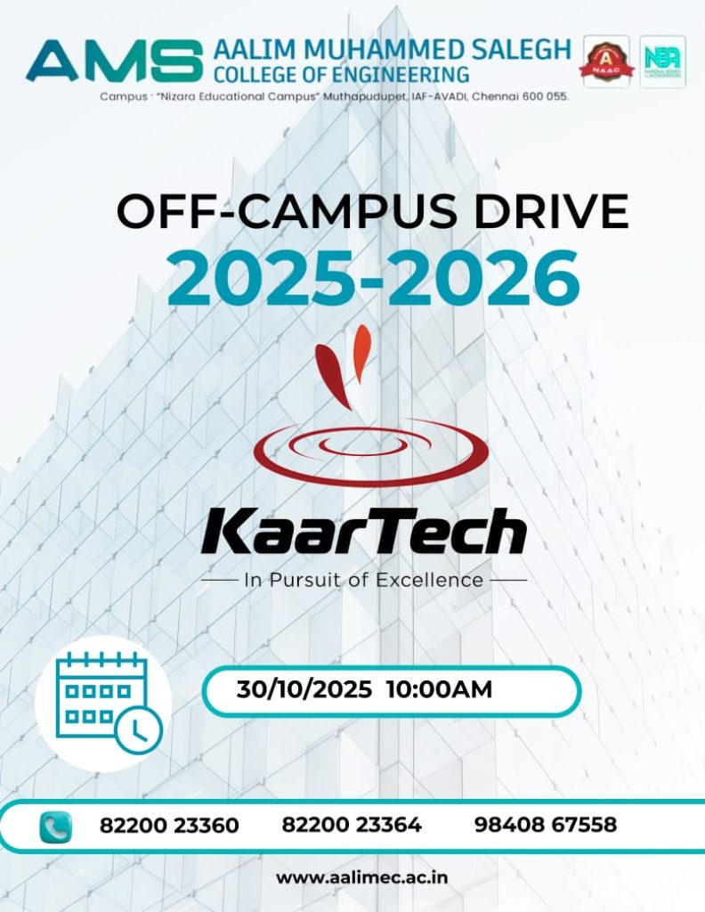 November 1 @ 9:30 am - 3:00 pm Faculty Development Program Aalim Muhammed Salegh College of Engineering, Avadi-IAF, Chennai, Tamil Nadu 600055 India + Google Map