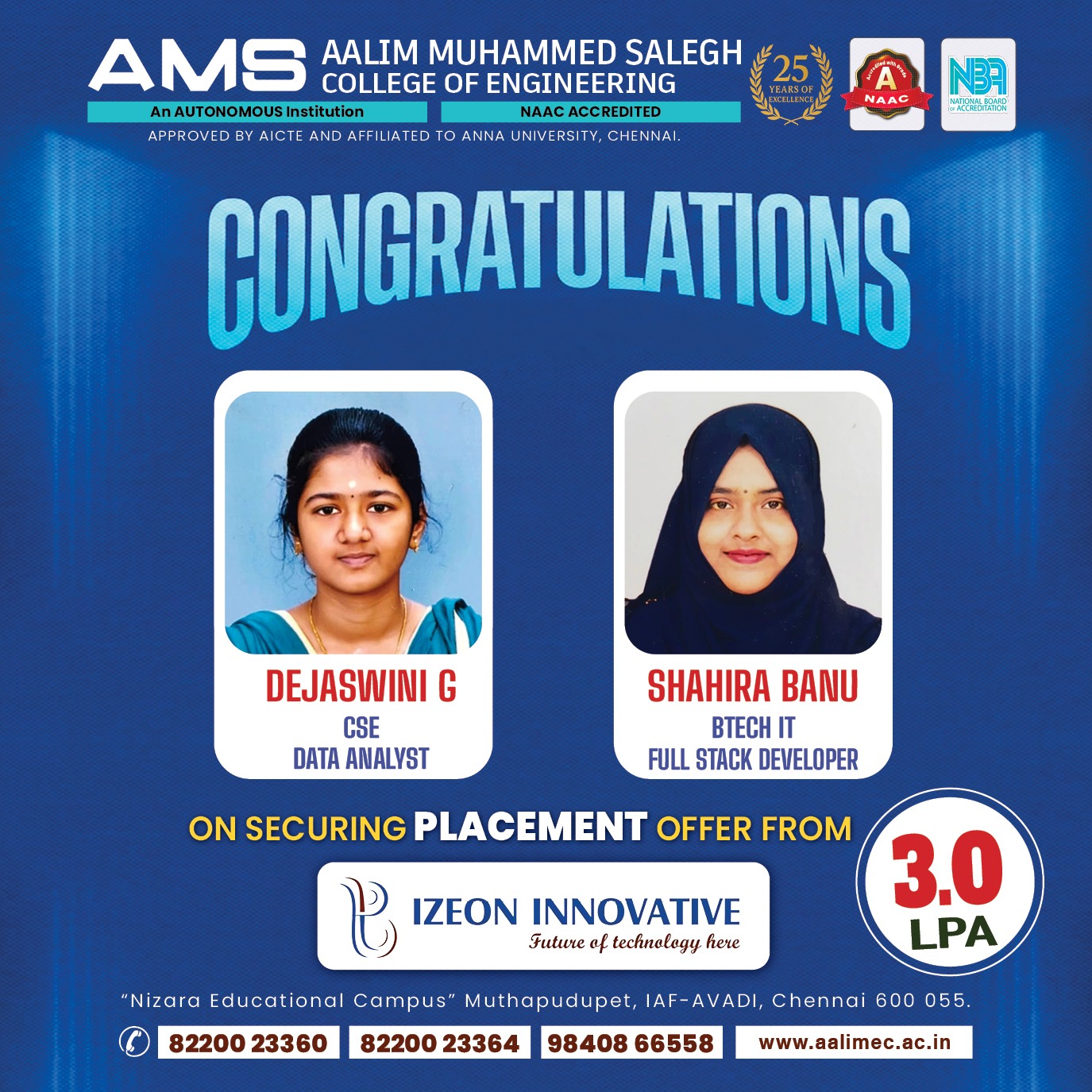 On Securing Placement Offer from IZEON INNOVATIVE